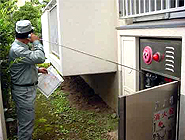 水栓の蛇口などに音聴棒と呼ばれる「音を増幅する棒」を使用し、 作業員の熟練の耳で、その音を特定し、漏水の個所を探します。 |
